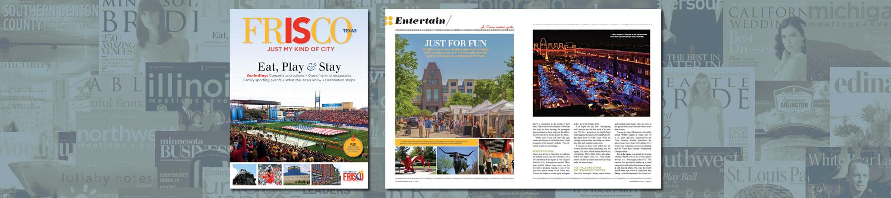 CHALLENGE: Working directly with the head of the Frisco, Texas, Convention and Visitor's Bureau, Tiger Oak custom was tasked with the launch of the first-ever visitor's guide for Frisco. This required developing the editorial content and lasting brand design, all while making the product cost-effective through strong advertising sales.